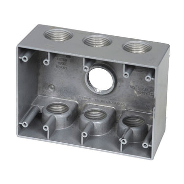 The Westgate W3DB100-7 3-Gang 1" 7-Hole Weatherproof Electrical Box is a durable, versatile solution for exterior or interior electrical installations. Constructed from die-cast aluminum, this box provides rugged protection in wet, damp, or dry locations and is fully NEMA 3R rated for weather resistance.